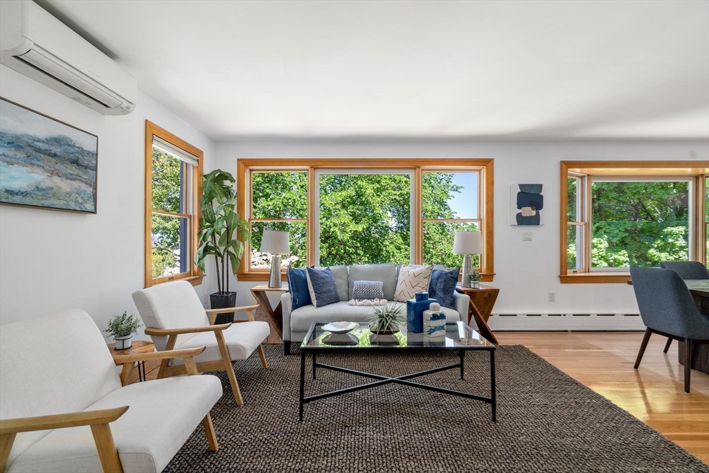 Tucked away on a leafy street atop Corey Hill, this gem of a house offers panoramic city views and spans over 2,400 square feet of living space, featuring four bedrooms and three and a half baths. Built in 1925, it mirrors the Colonial Garrison architectural style with a fabulous layout well-suited for modern living. The main level includes a formal living room, an open plan, eat in kitchen with treetop and city vistas, a splendid office/den, and a convenient powder room. This design facilitates both everyday living and entertaining. Upstairs, there are three bedrooms and two baths, including a primary suite with an office and california closets. The lower level features a large, finished space with yard views and a full bath. Outside, the well-kept grounds offer a secluded backyard with mature plantings, dual decks, complemented by an attached garage. The house comes with ample storage. Its prime location affords convenient access to Coolidge Corner and Washington Square. A must see!