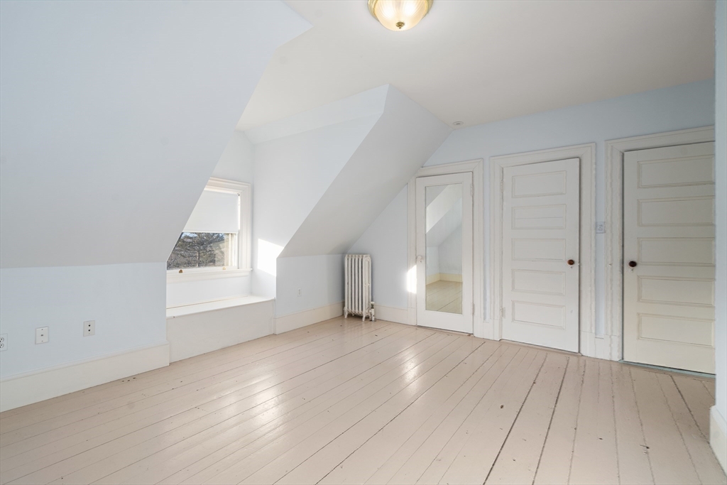 Stunning Victorian residence beautifully sited high atop Farlow Hill. This is an extraordinary example of Victorian-style architecture that has been carefully renovated to preserve the original detail. The first floor features a magnificent entry foyer with sweeping staircase, a large living room with wood-burning fireplace, a gracious dining room, and a spectacular kitchen with high-end stainless appliances, custom mill work, ample storage, a breakfast nook, and a scullery area with prep sink and laundry. There is also an adjoining family room with a fireplace and access to the spacious deck. On the second level there are four generously sized bedrooms including a primary with a sitting room and bathroom. The third floor has three large rooms and a full bathroom, ideal for office, playroom and guests. High ceilings, gorgeous views, and beautiful light throughout. All this located in a coveted location minutes to downtown Boston, highly desired schools, and shops. Don't miss this one!
